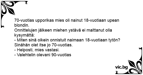 70-vuotias upporikas mies oli nainut 18-vuotiaan upean blondin.