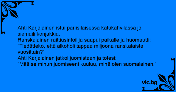 Ahti Karjalainen jatkoi juomistaan ja totesi: