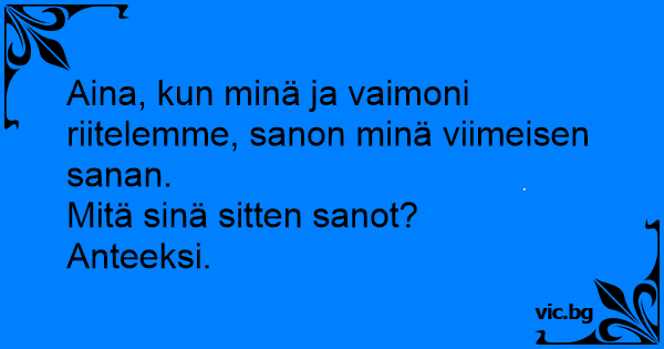 Aina, kun minä ja vaimoni riitelemme, sanon minä viimeisen sanan.