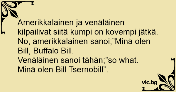 Venäläinen sanoi tähän;”so what. Minä olen Bill Tsernobill”.