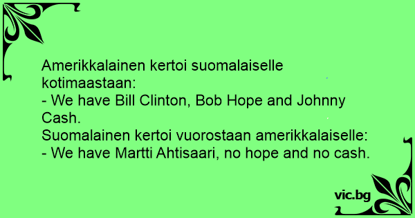 - We have Martti Ahtisaari, no hope and no cash.