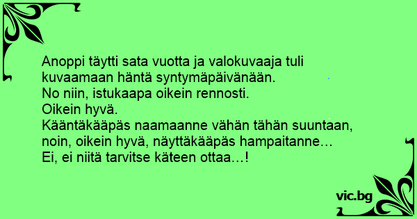 Anoppi täytti sata vuotta ja valokuvaaja tuli kuvaamaan häntä syntymäpäivänään.