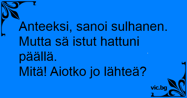 Mutta sä istut hattuni päällä.