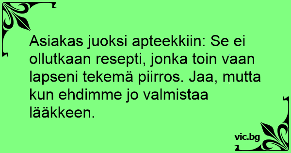 Asiakas juoksi apteekkiin: Se ei ollutkaan resepti, jonka toin vaan lapseni tekemä piirros. Jaa, mutta kun ehdimme jo valmistaa lääkkeen.