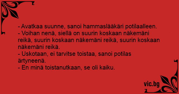 - Uskotaan, ei tarvitse toistaa, sanoi potilas ärtyneenä.