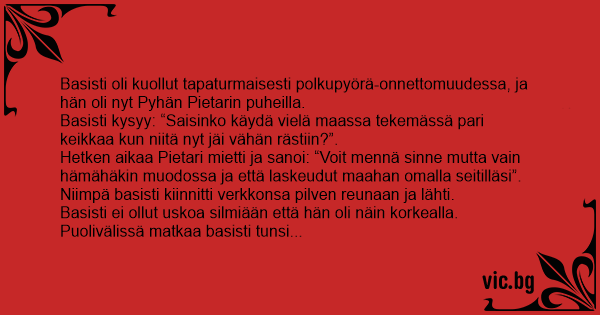 Basisti oli kuollut tapaturmaisesti polkupyörä-onnettomuudessa, ja hän oli nyt Pyhän Pietarin puheilla.