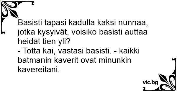 - Totta kai, vastasi basisti. - kaikki batmanin kaverit ovat minunkin kavereitani.