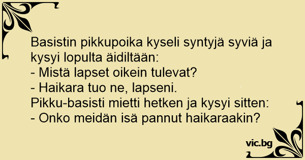 Basistin pikkupoika kyseli syntyjä syviä ja kysyi lopulta äidiltään: