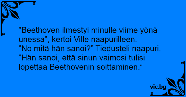 ”Beethoven ilmestyi minulle viime yönä unessa”, kertoi Ville naapurilleen.