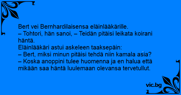 – Tohtori, hän sanoi, – Teidän pitäisi leikata koirani häntä.