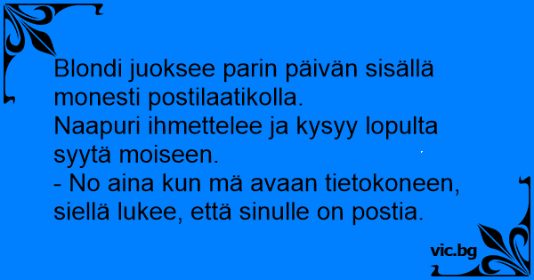 - No aina kun mä avaan tietokoneen, siellä lukee, että sinulle on postia.