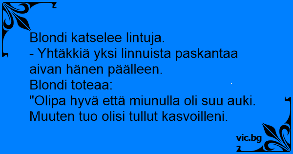 "Olipa hyvä että miunulla oli suu auki. Muuten tuo olisi tullut kasvoilleni.