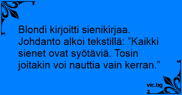 Johdanto alkoi tekstillä: ”Kaikki sienet ovat syötäviä. Tosin joitakin voi nauttia vain kerran.”