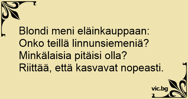 Blondi meni eläinkauppaan: Onko teillä linnunsiemeniä?