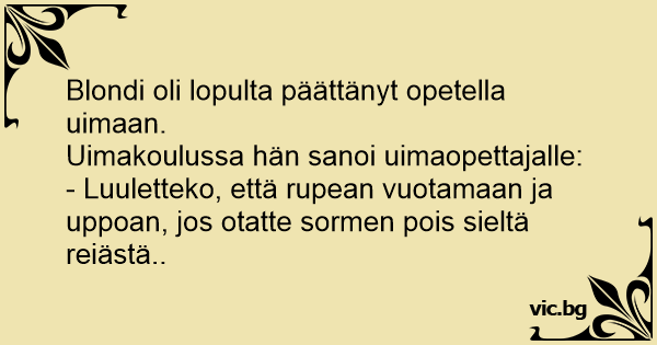 Uimakoulussa hän sanoi uimaopettajalle: