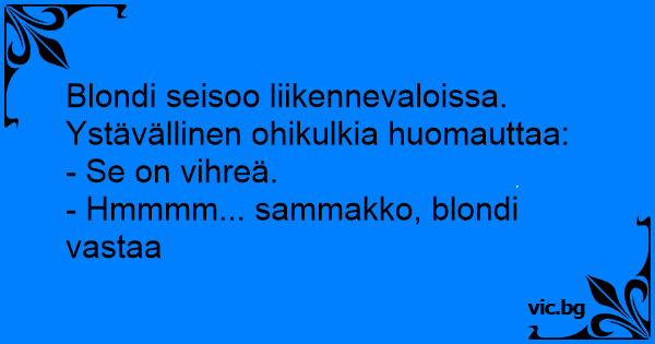 Blondi seisoo liikennevaloissa. Ystävällinen ohikulkia huomauttaa: