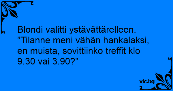 ”Tilanne meni vähän hankalaksi, en muista, sovittiinko treffit klo 9.30 vai 3.90?”
