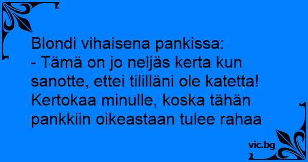 Blondi vihaisena pankissa:...