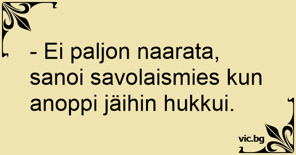 - Ei paljon naarata, sanoi savolaismies kun anoppi jäihin hukkui.