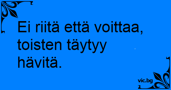 Ei riitä että voittaa, toisten täytyy hävitä.
