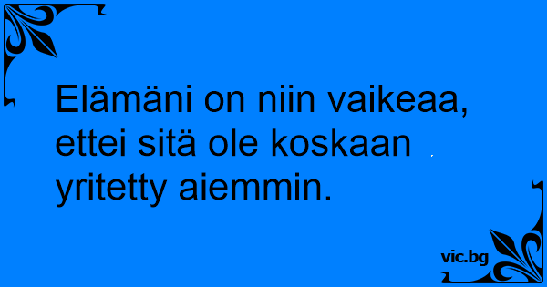Elämäni on niin vaikeaa, ettei sitä ole koskaan yritetty aiemmin.