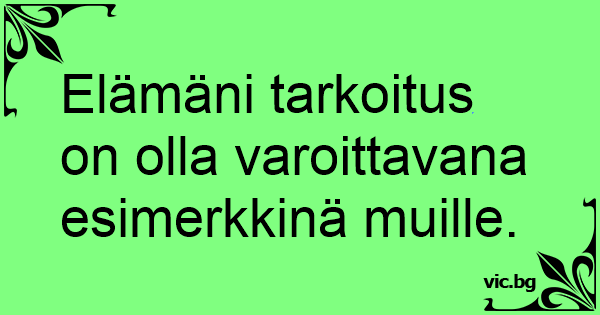 Elämäni tarkoitus on olla varoittavana esimerkkinä muille.