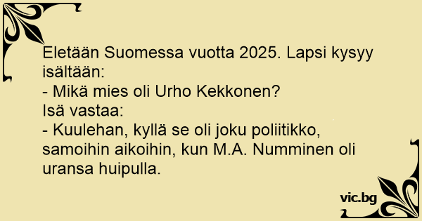 - Kuulehan, kyllä se oli joku poliitikko, samoihin aikoihin, kun M.A. Numminen oli uransa huipulla.