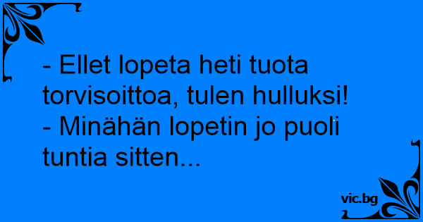 - Ellet lopeta heti tuota torvisoittoa, tulen hulluksi!
