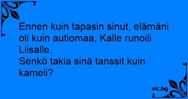 Ennen kuin tapasin sinut, elämäni oli kuin autiomaa, Kalle runoili Liisalle.