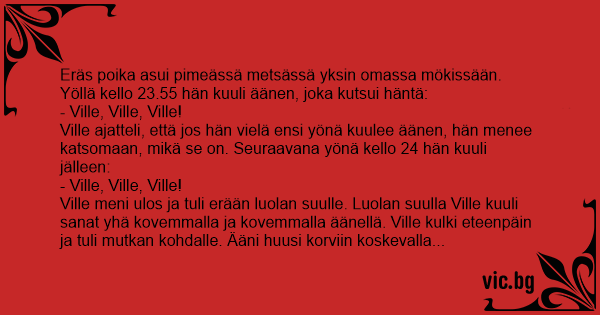 Ville ajatteli, että jos hän vielä ensi yönä kuulee äänen, hän menee katsomaan, mikä se on. Seuraavana yönä kello 24 hän kuuli jälleen: