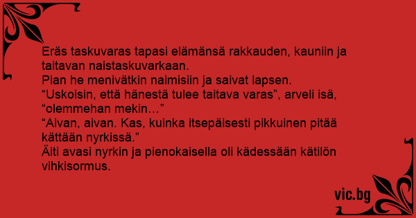 “Uskoisin, että hänestä tulee taitava varas”, arveli isä, “olemmehan mekin…”