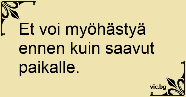 Et voi myöhästyä ennen kuin saavut paikalle.