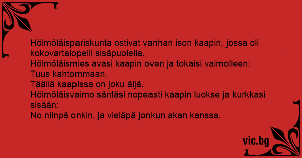Hölmöläismies avasi kaapin oven ja tokaisi vaimolleen: