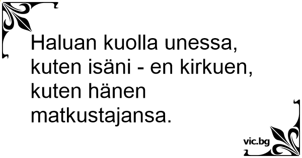 Haluan kuolla unessa, kuten isäni - en kirkuen, kuten hänen matkustajansa.