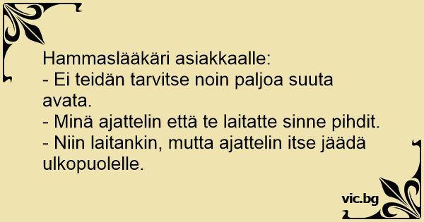 Hammaslääkäri asiakkaalle:...