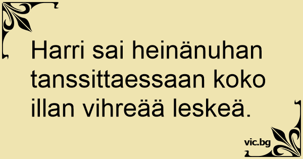 Harri sai heinänuhan tanssittaessaan koko illan vihreää leskeä.