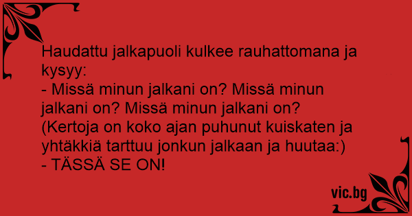 - Missä minun jalkani on? Missä minun jalkani on? Missä minun jalkani on?
