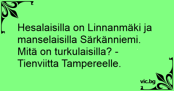 Hesalaisilla on Linnanmäki ja manselaisilla Särkänniemi. Mitä on turkulaisilla? - Tienviitta Tampereelle.