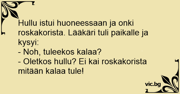Hullu istui huoneessaan ja onki roskakorista. Lääkäri tuli paikalle ja kysyi: