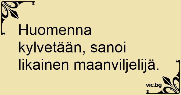 Huomenna kylvetään, sanoi likainen maanviljelijä.