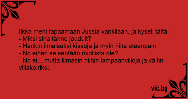 Ilkka meni tapaamaan Jussia vankilaan, ja kyseli tältä: