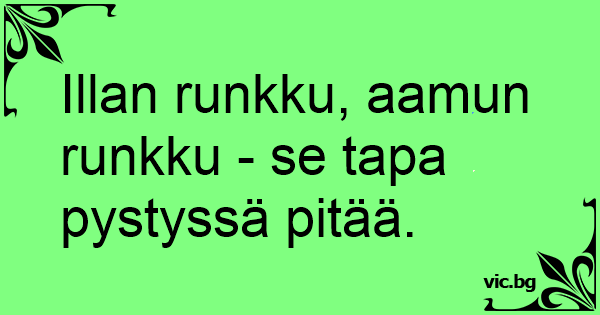 Illan runkku, aamun runkku - se tapa pystyssä pitää.
