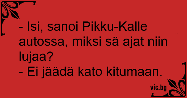 - Isi, sanoi Pikku-Kalle autossa, miksi sä ajat niin lujaa?