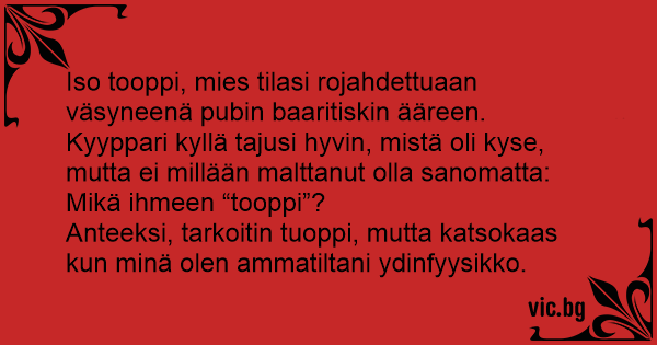 Iso tooppi, mies tilasi...