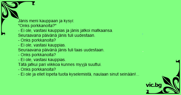- Ei ole, vastasi kauppias ja jänis jatkoi matkaansa.