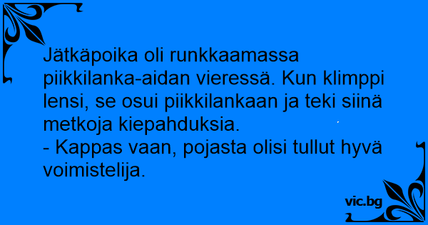 Jätkäpoika oli runkkaamassa piikkilanka-aidan vieressä. Kun klimppi lensi, se osui piikkilankaan ja teki siinä metkoja kiepahduksia.