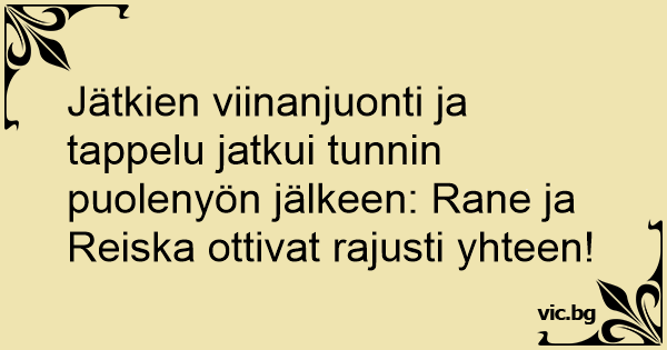 Jätkien viinanjuonti ja tappelu jatkui tunnin puolenyön jälkeen: Rane ja Reiska ottivat rajusti yhteen!