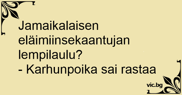 Jamaikalaisen eläimiinsekaantujan lempilaulu?