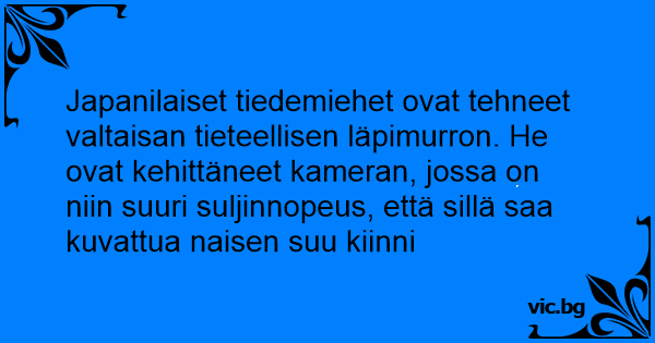 Japanilaiset tiedemiehet ovat tehneet valtaisan tieteellisen läpimurron. He ovat kehittäneet kameran, jossa on niin suuri suljinnopeus, että sillä saa kuvattua naisen suu kiinni