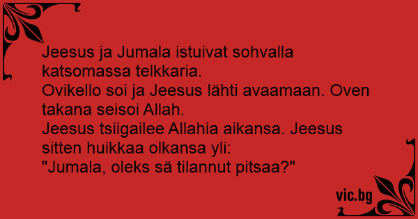 Ovikello soi ja Jeesus lähti avaamaan. Oven takana seisoi Allah.